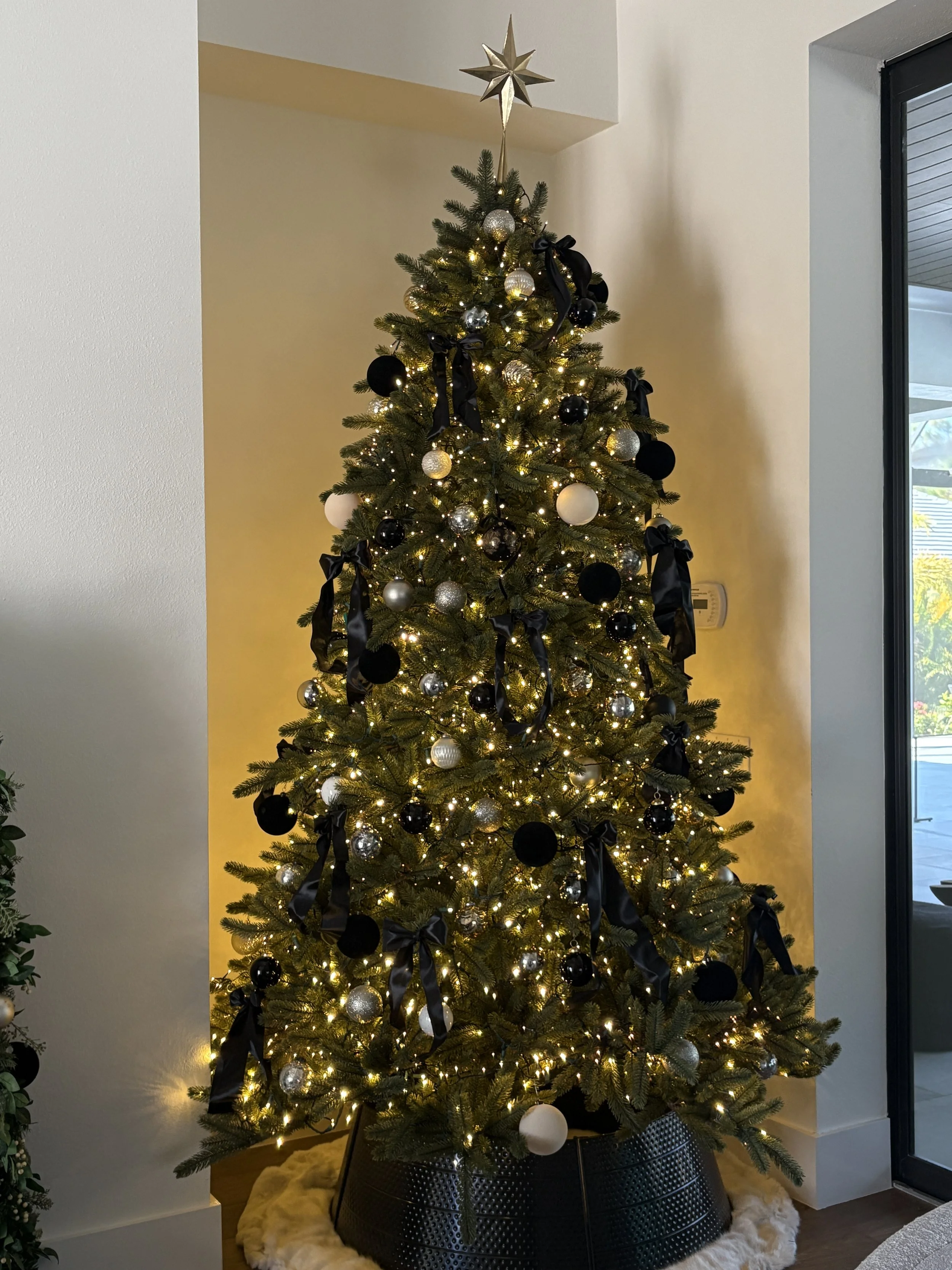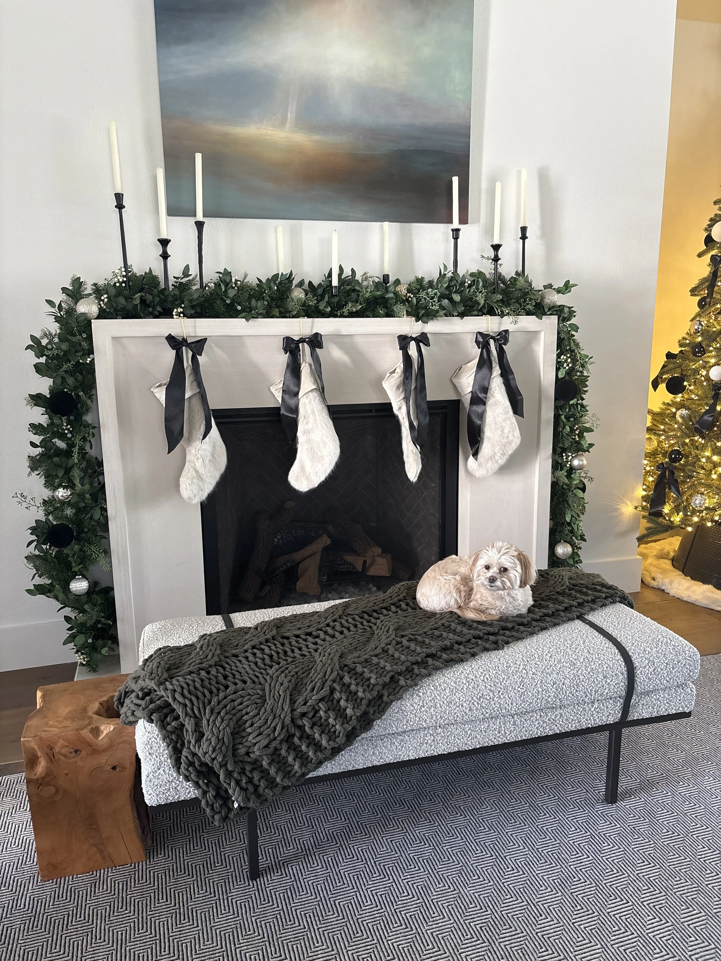 With the tree skirt, collar, and timer in place, the home began to radiate chic, understated holiday glamour.