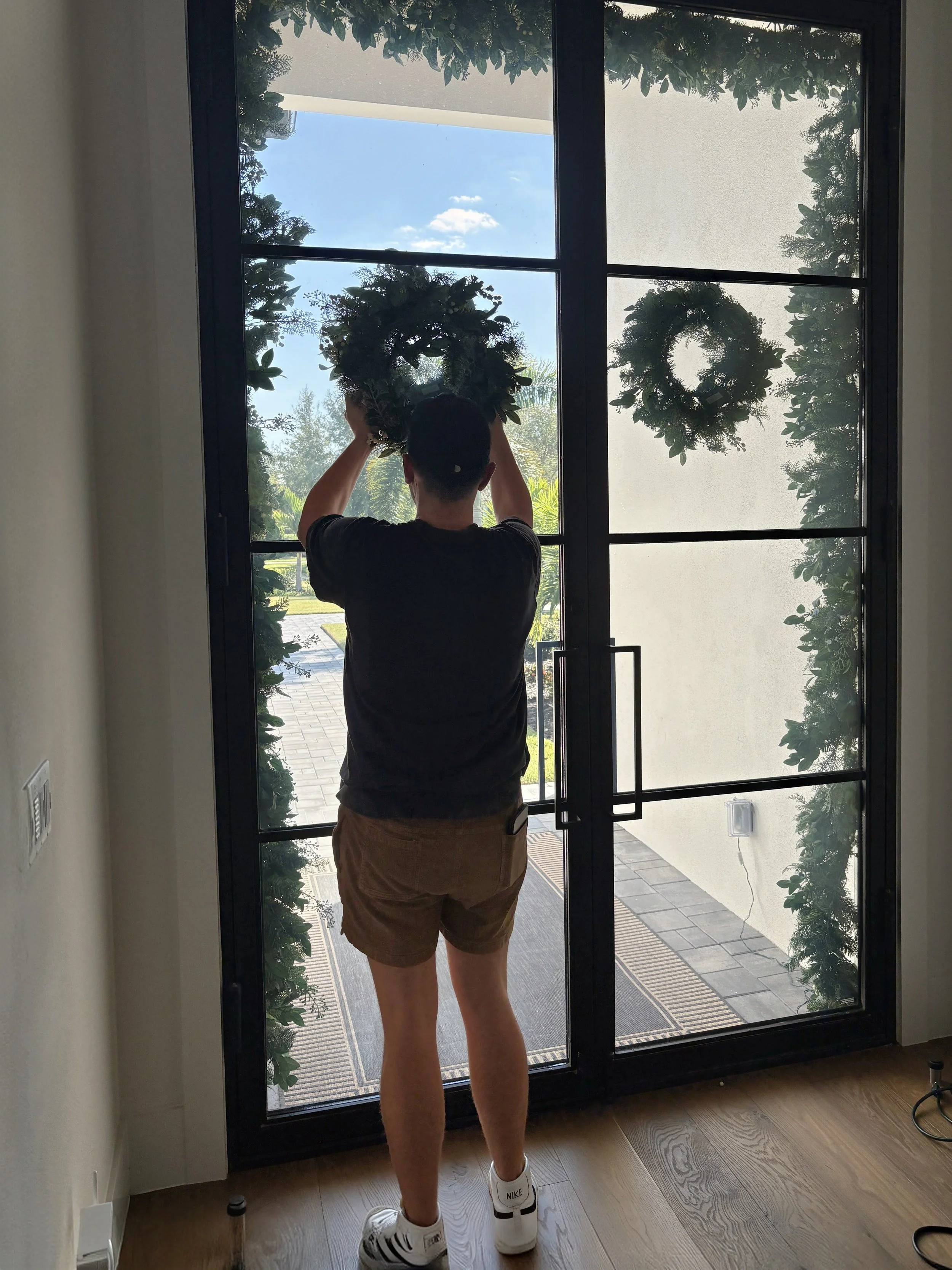 ✨ Mirrored the design inside by adding identical wreaths to the interior doors