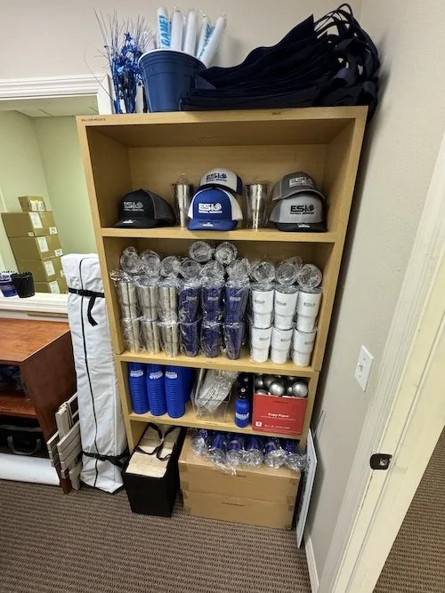 The biggest challenge was the back storage area, which included two closets that had gradually become catch-all spaces. They were filled with promotional products, office supplies, and even holiday décor (this team celebrates everything, which we love). In addition to the closets, some of the surrounding areas had started to function as overflow space, making it harder for the team to find what they needed and keep things organized.