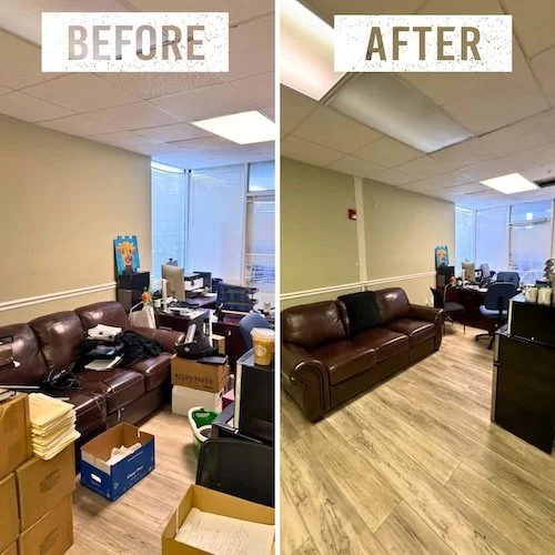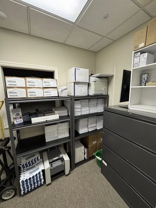 On the second day, we expanded beyond the closets and focused on improving the overall functionality of the space. This included organizing office supplies, reworking the printer room, and helping prepare a back room that will eventually be turned into a break room. We also assisted with relocating furniture based on the designer’s plan and created simple, functional systems within the cabinets in David’s office.